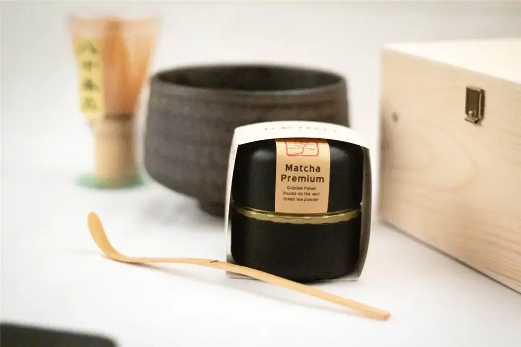 Japonski darilni set vsebuje vse, kar potrebujete za pripravo matcha čaja - keramično bovlo, metlico in dozirno žličko iz bambusa ter 30g pločevinko z našim najbolj prodajanim čajem Keiko matcha premium.