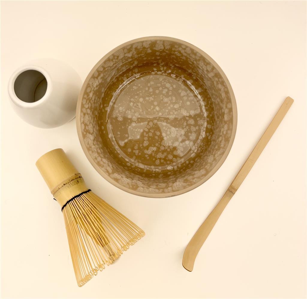 Kitajski set, ki vsebuje bovlo in stojalo za metlico iz porcelana ter metlico in žličko iz bambusa. Vse, kar potrebujete za pripravo matcha čaja. Barva porcelana se lahko rahlo razlikuje od prikazane na sliki. Zunanja stran je mat barve.
