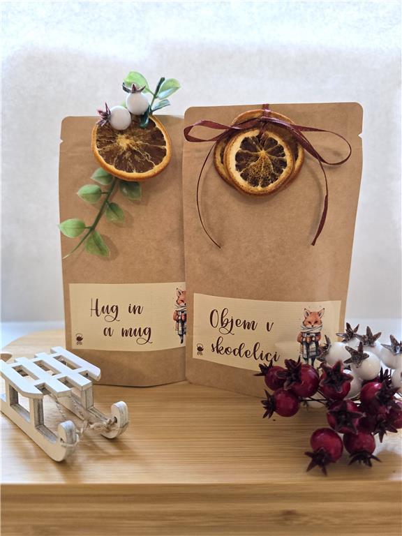 V papirnati vrečki je spravljeno 30g božičnega sadnega čaja. Pri oddaji naročila napišite, kateri napis želite na vrečki - slovenskega ali angleškega. Barva traku in dekoracija se lahko razlikujeta od prikazanih na sliki.