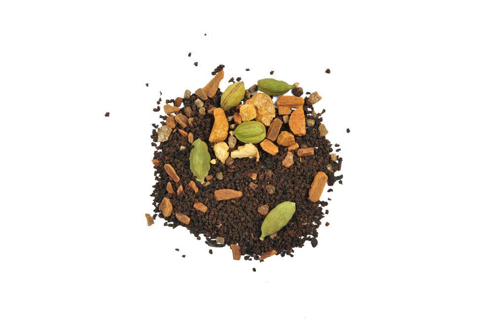 Čaju so dodani koščki cimeta, ingverja, kardamoma in vanilije.