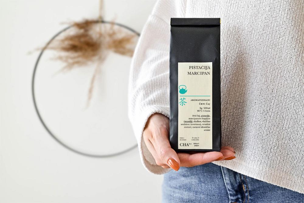 Črni čaj, ki je z dodatkom roza vrtničnih cvetov in zelenih pistacij prava paša za oči. Marcipanove kapljice, ki se počasi raztapljajo v vroči vodi, pa vam bodo prijetno ogrele srce.