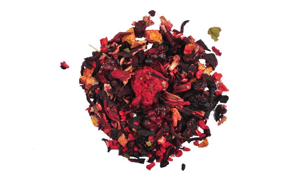 Sestavine: hibiskus, jabolko, bezgove jagode, rozine, robide, jagode, maline, listi robidovca, naravni identične arome