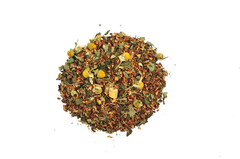 SESTAVINE: rooibos in honeybush čaj, melisa, kamilica, komarček, janež, robidovi listi, ginseng, naravni identične arome medu, vanilija, smetane in karamele