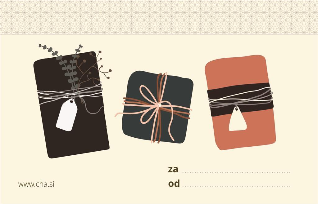 Če želite vaš spletni nakup poslati na drug naslov in ga nekomu podariti, vam zraven paketa lahko priložimo darilno kartico. Pri oddaji naročila v okence "KOMENTAR" prosimo napišite čestitko, ki bi jo radi posvetili osebi, ki bo darilo prejela. Mi jo bomo vestno zapisali na zadnjo stran kartice. Zaupajte nam tudi imeni, ki ju napišemo pod rubriko "ZA...... OD......"